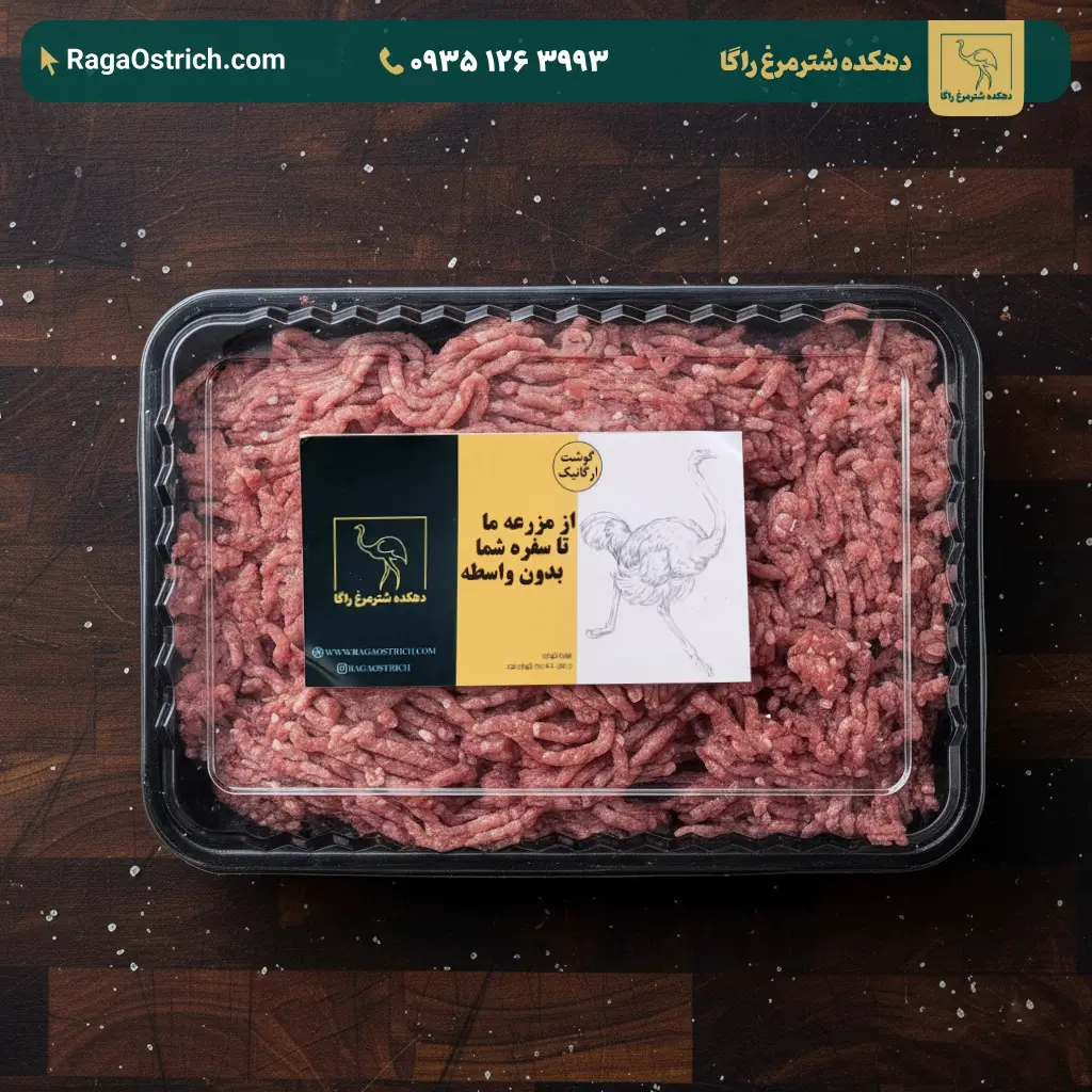گوشت چرخکرده تازه شترمرغ با طعمی لذیذ، بافتی نرم و ارزش غذایی بالا،